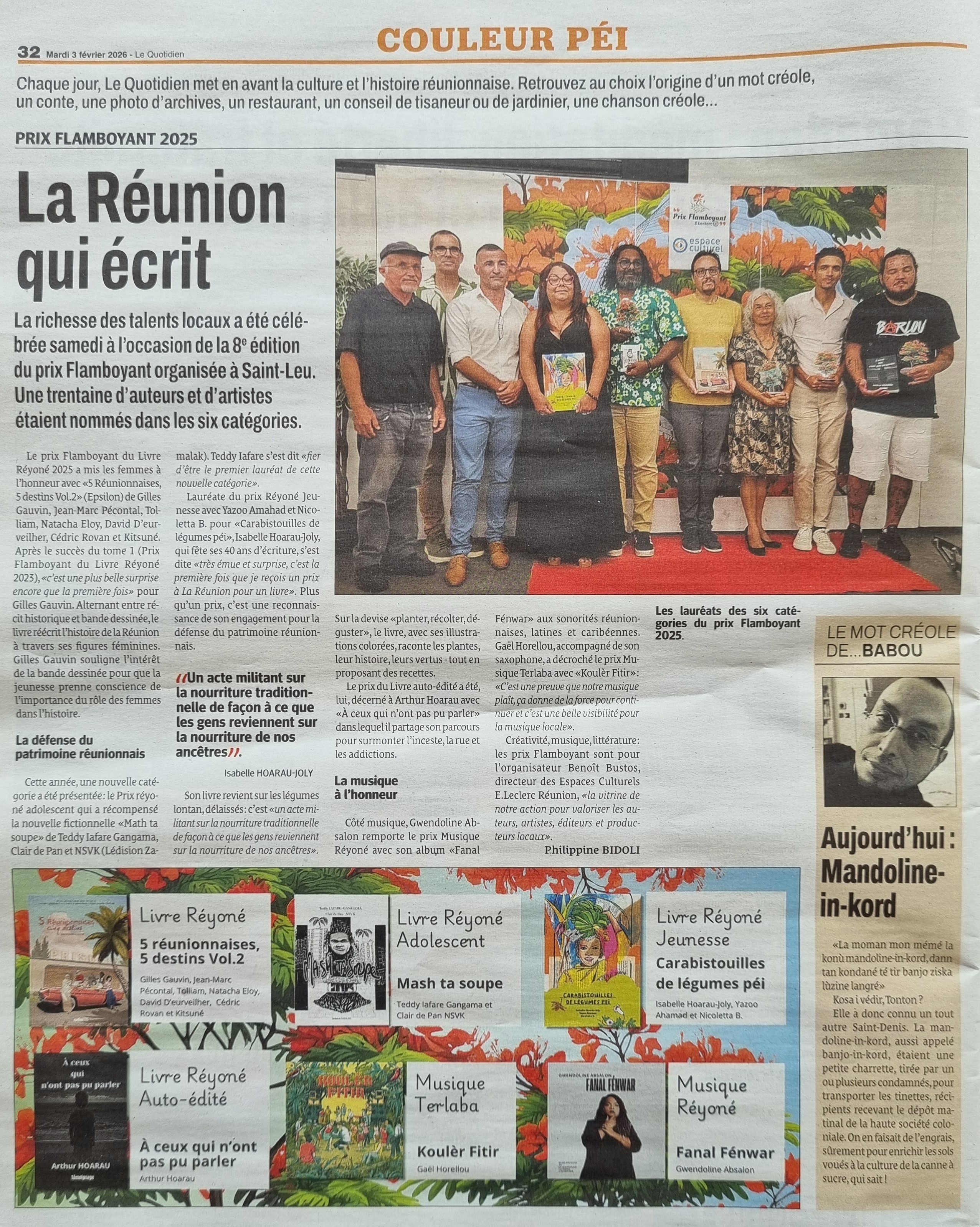 Tout comme ce fut le cas pour le premier volume, ce deuxième volume a obtenu en janvier 2026 le Prix Flamboyant du livre réyoné.